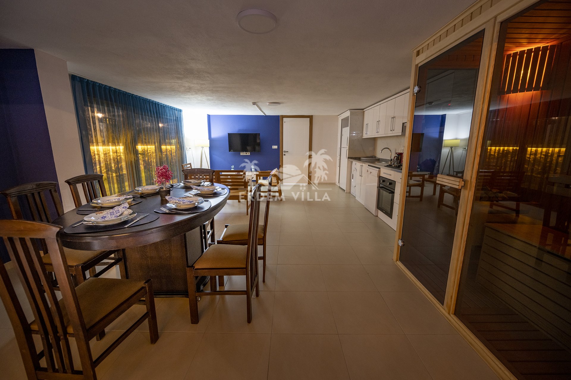 Özel yüzme havuzunda serinleyip ferah bahçesinde dinlemenin tadını çıkaran misafirler, sevdikleriyle mangal keyfi yapma şansına sahip. Villanın bir diğer avantajı, langırt masasında eğlenceli zaman geçirdikten sonra saunanın keyfini çıkarmak. Misafirler, tatilin keyfini doğayı ve denizi gören balkonlarda sürebilir. Ferah iç dekorasyonuna eşlik eden geniş bahçe alanı ile Villa Doğa Kumdağı, kendinizi ev sahibi rahatlığında hissedeceğiniz konforlu bir ortam sunuyor. Rezervasyonunuzu hemen yaptırın, doğa ve deniz manzarası ile lüks bir tatilin keyfini çıkarın.